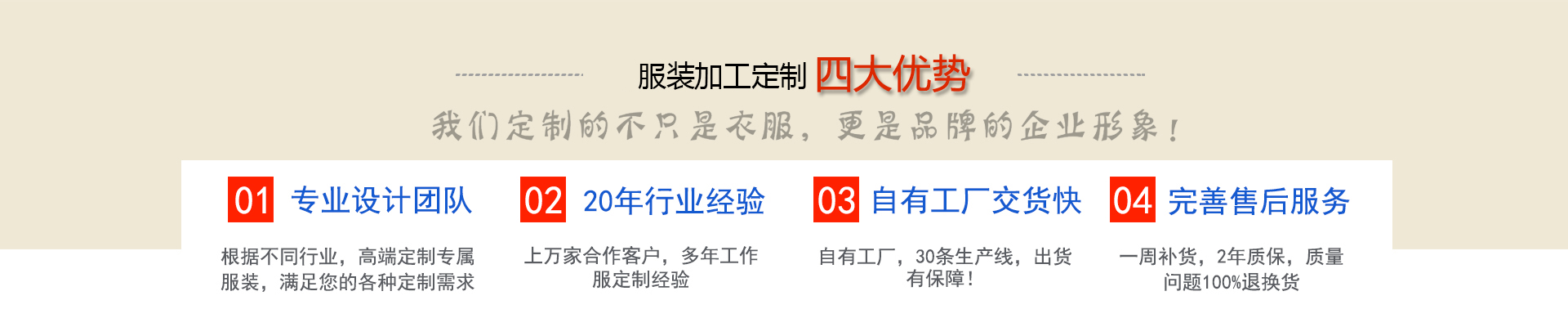 服裝加工網(wǎng)是一家及設(shè)計(jì)、生產(chǎn)、銷(xiāo)售為一體的專(zhuān)業(yè)服裝生產(chǎn)型企業(yè), 根據(jù)客戶(hù)需求定制西服襯衫工作服大衣棉服等產(chǎn)品,近二十年工作服職業(yè)裝定做經(jīng)驗(yàn)積累, 工期短交貨及時(shí),免費(fèi)提供團(tuán)體定制上門(mén)量體服務(wù),送貨上門(mén),免費(fèi)修改,完善的售后服務(wù), 滿(mǎn)足您的各種定制需求!